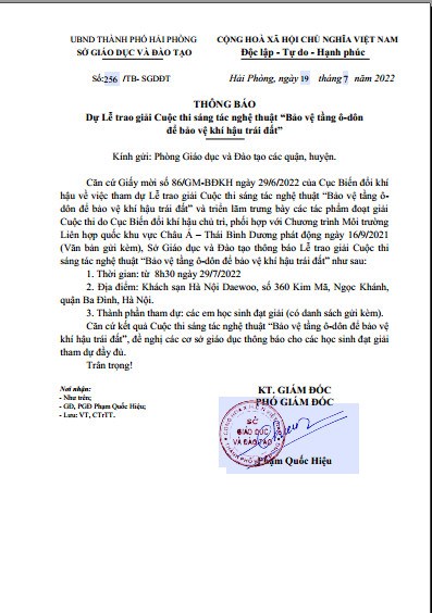 Hưởng ứng phong trào đó cô và trò trường THCS Kiến Thiết tích cực tham gia dưới nhiều hình thức nhằm bảo vệ môi trường như: trồng cây xanh, quét dọn vệ sinh trường lớp và vẽ tranh tuyên truyền. Rất vinh dự cho trường THCS Kiến Thiết em Đặng Thuỳ Trang (Sinh ngày 13/10/2009) lớp 7A đã đạt được giải khuyến khích cấp quốc gia trong kì thi vẽ tranh sáng tác nghệ thuật “BẢO VỆ TẦNG Ô – DÔN ĐỂ BẢO VỆ KHÍ HẬU TRÁI ĐẤT” do Bộ Tài nguyên và Môi trường phát động.